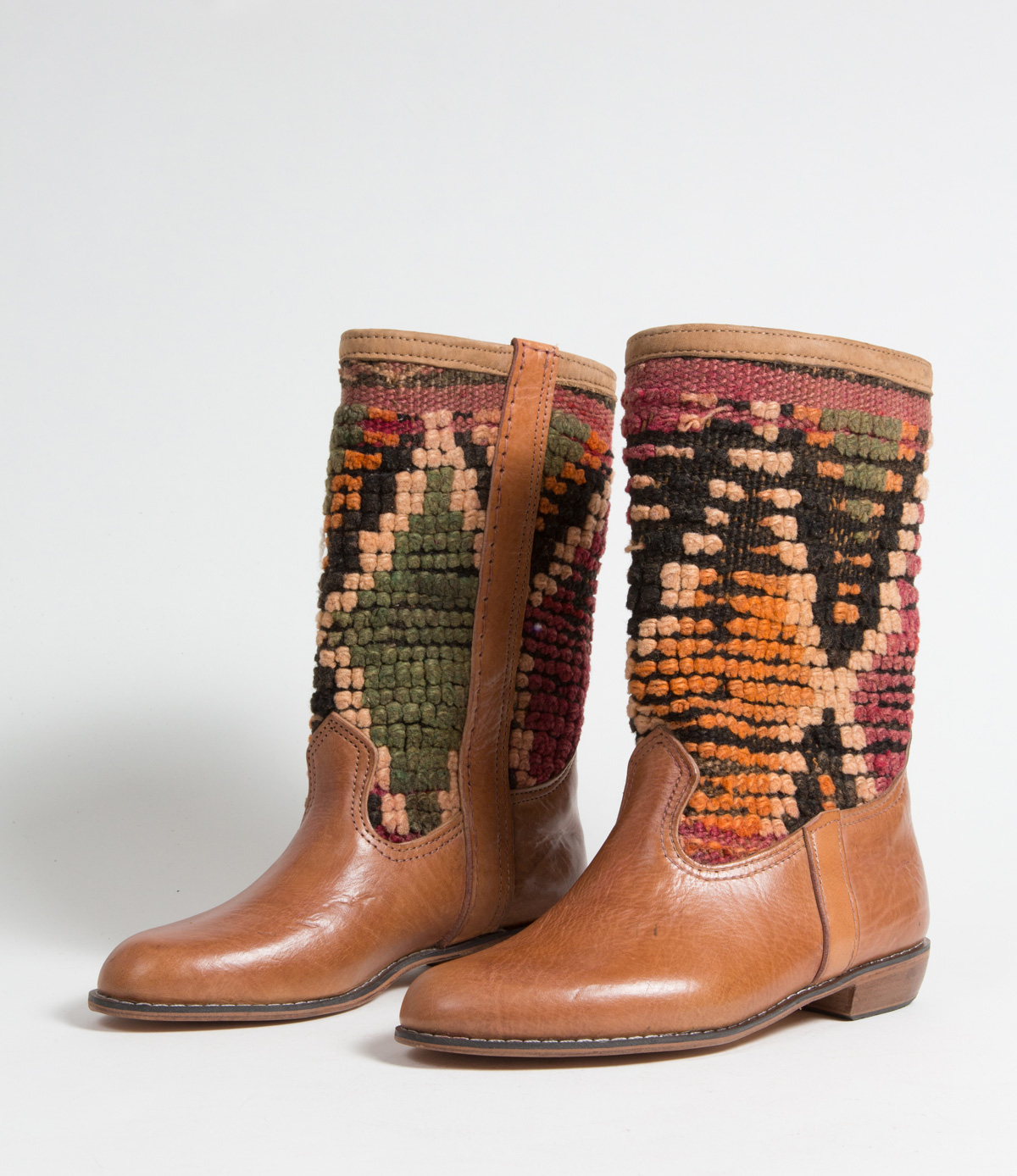 Bottes cuir et Kilim faites main. Un joli mariage entre le cuir et le kilim. Osez vous faire remarquer !